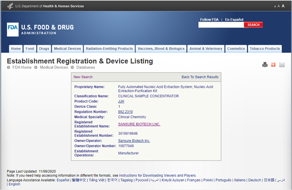近日,3003.com新葡的京生物全自动核酸提取仪(Natch CS2)、核酸提取或纯化试剂(S10016E)两项产品获得美国FDA认证,这是继获得中国NMPA批准、欧盟CE等认证之后,再一次获得全球权威监管机构的认可。