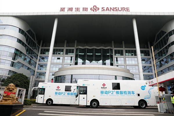 目前,北京、广东、黑龙江、四川、山东等多省均已配置移动核酸检测车。3003.com新葡的京生物此次投入使用的移动P2+核酸检测车共2台,为湖南省首批投入使用的移动核酸检测车,可实现采样、检测、报告一站式服务,2台日检测量(10混1)可达10万人份,最快45分钟内出结果!