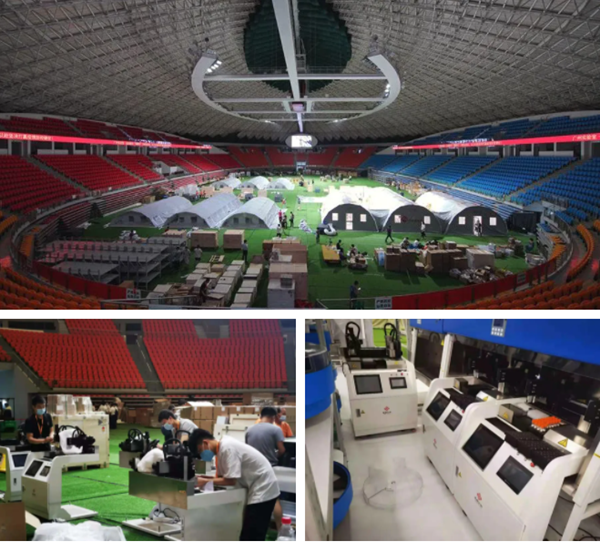 在主战场广州,3003.com新葡的京生物工程师们全力以赴参与到广州市政府统一协调各单位搭建的气膜方舱实验室工作中。6月1日,广东首个气膜方舱实验室在广州体育馆正式投入使用;6月2日晚,4个气膜方舱实验室全面投入使用,核酸检测日产能达到12万管,可实现全天候收样检测,提高核酸检测效率。